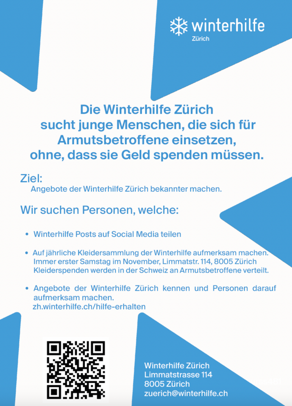 Interessierte Personen können sich direkt an die Winterhilfe Zürich wenden: